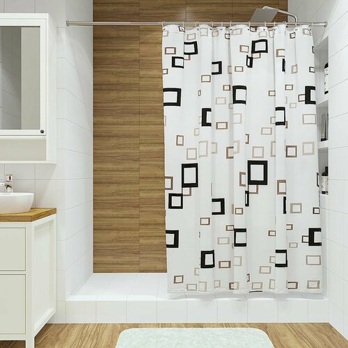 Штора для ванной Графика 180х180 см текстиль бело-бежевый