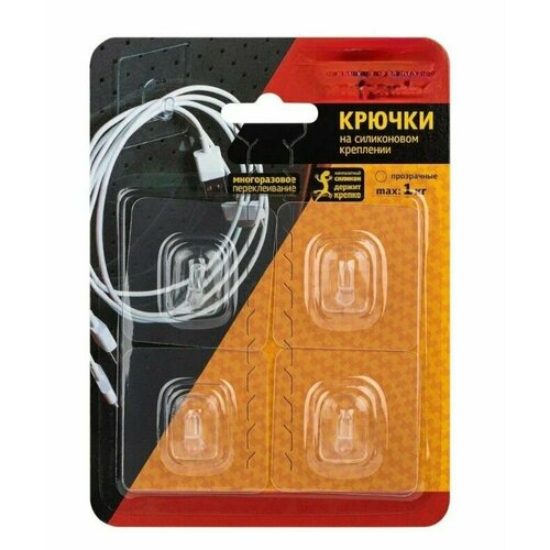 Крючки самоклеящиеся 5х5 см 4 шт прозрачные