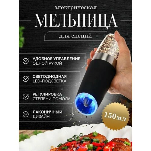 Мельница для специй электрическая, Автоматическая с подсветкой и регулятором помола, 1 шт.