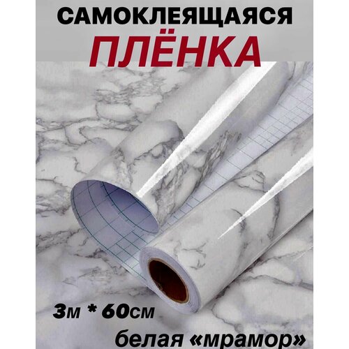 Самоклеящаяся плёнка для мебели, кухни, водостойкая, универсальная белая Мрамор, 3 метра