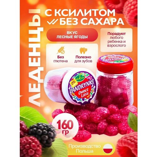Леденцы фруктовые без сахара с ксилитом со вкусом Лесные ягоды, ассорти 160г, Польша