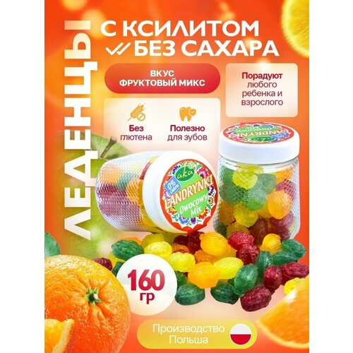 Леденцы фруктовые без сахара с ксилитом вкус Фруктовый микс, ассорти , 1 шт-160г, Польша