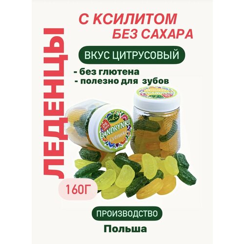 Леденцы фруктовые без сахара на ксилите вкус Цитрусовый, 160г, Польша