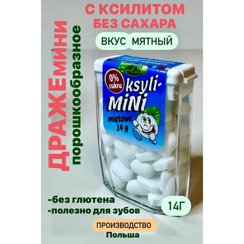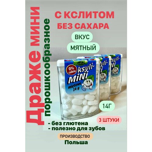 Драже мини с ксилитом без сахара со вкусом мяты, 14г, комплект 3 шт, Польша