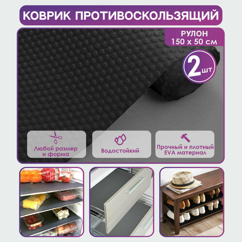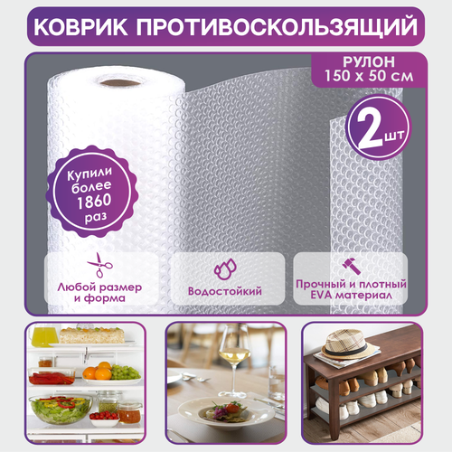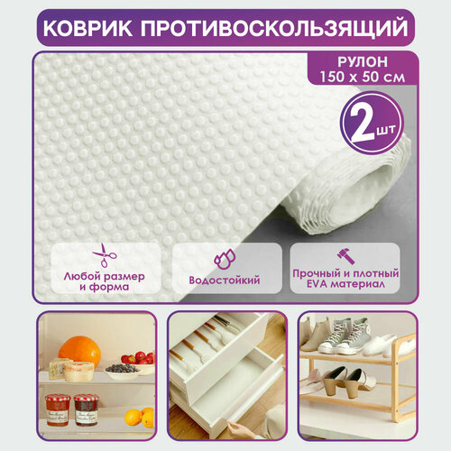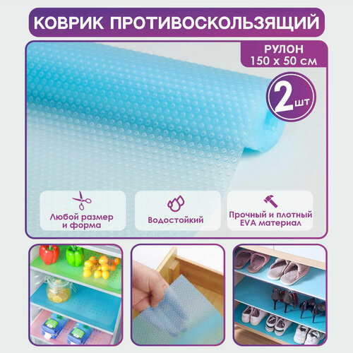 Коврик для холодильника на полку, для кухонных ящиков, противоскользящий водонепроницаемый в рулоне 150х50 см / плейсматы на стол на кухню 2 шт