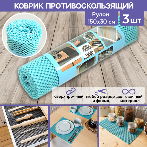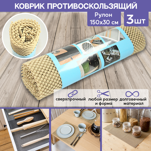 Коврики для холодильника, кухонных полок, ящиков противоскользящий 150х30 см в рулоне набор из 3-х шт, плейсматы на стол на кухню