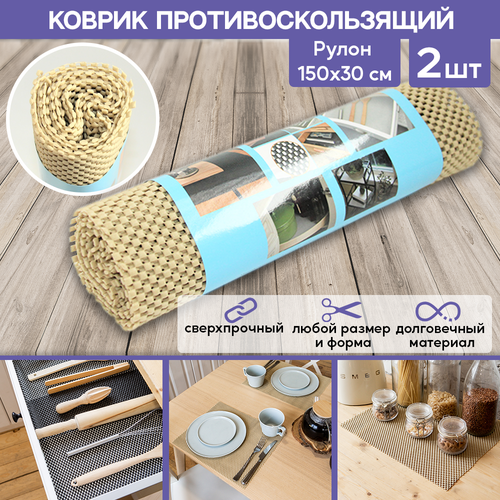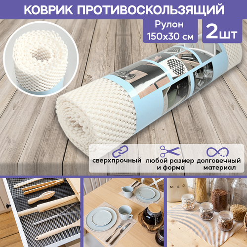Коврик для кухонных ящиков, для холодильника на полку, противоскользящий водонепроницаемый в рулоне 150х30 см, набор 2шт / плейсматы на стол на кухню