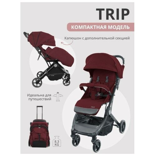 Indigo Коляска прогулочная Indigo TRIP, цвет бордовый