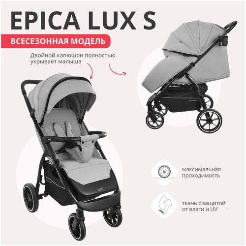 Коляска прогулочная Indigo Epica Lux S всесезонная, светло-серый