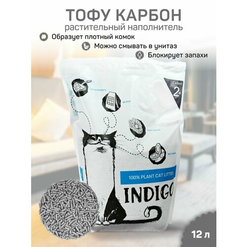 Наполнитель соевый для кошачьего туалета карбон INDIGO Tofu Carbon, комкующийся, растительный, 12 л