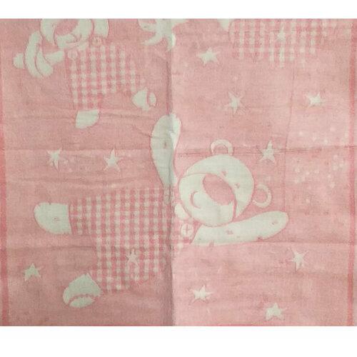 Одеяло детское шерстяное 85% 100х140 - Я - мишка с зайкой розовое 01-11