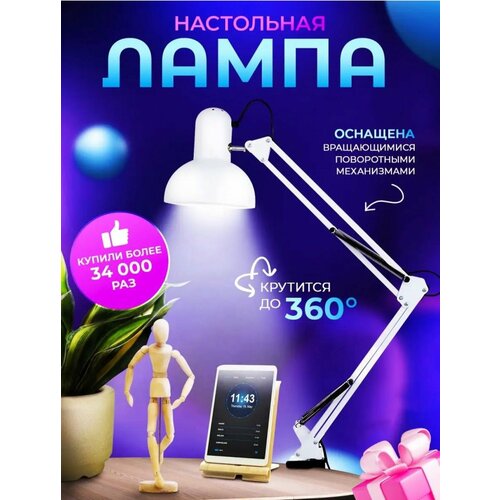Настольная лампа на струбцине белая (без лампочки в комплекте)
