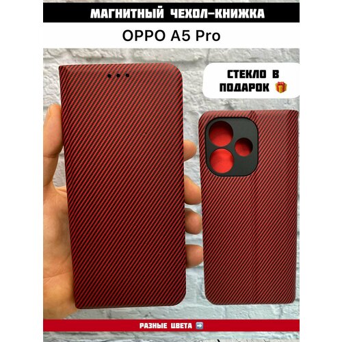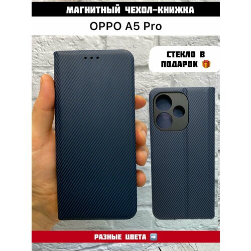 Чехол книжка для Oppo A5 Pro в стиле "карбон" с защитой блока камеры