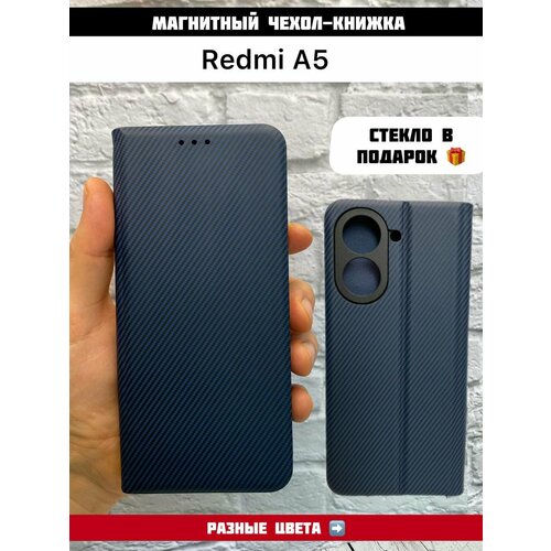 Чехол-книжка "Карбон", для Redmi A5/Poco C71, экокожа, с защитой камеры, тёмно-синий