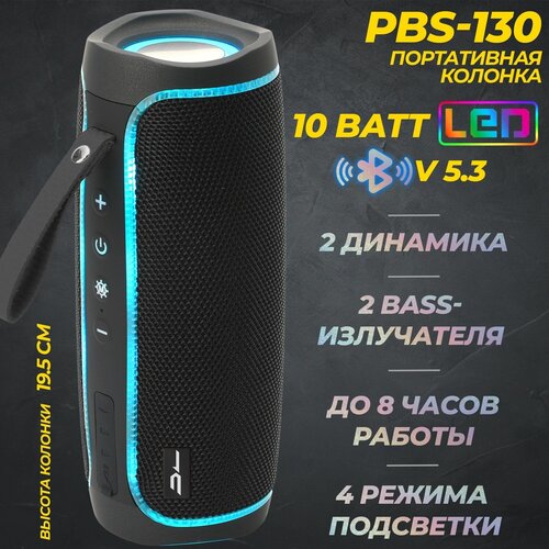 Портативная Bluetooth колонка PBS-130 c LED подсветкой черная