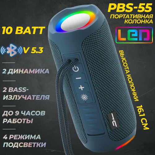 Портативная Bluetooth колонка беспроводная PBS-130 c LED подсветкой синяя с FM радио