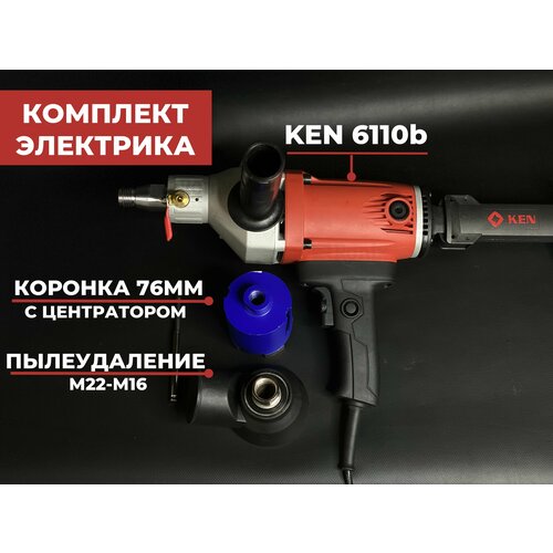 Комплект для алмазного бурения алмазная дрель KEN 6110b + коронка 76мм + пылеудаление