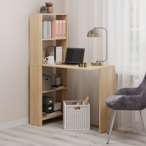 Стол письменный компьютерный офисный для ноутбука с открытыми полками Кео СТК-100 дуб сонома