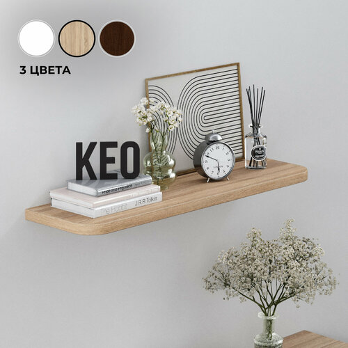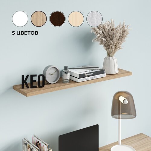 Полка настенная 90х19.6х2.2 см со скрытым креплением деревянная для книг и цветов Кео СТМ-600 дуб сонома