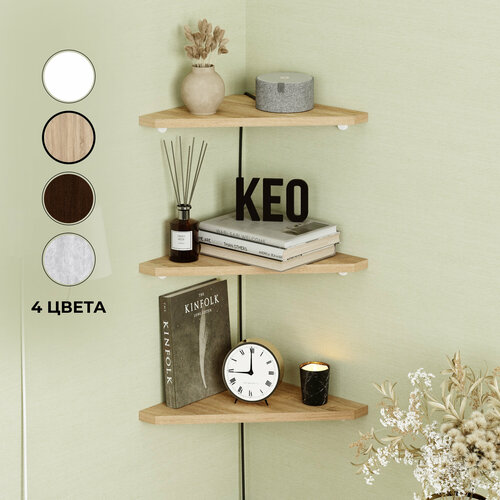 Угловая полка настенная комплект из 3 шт для книг и цветов в спальню кухню детскую туалет Кео СТМ-608 дуб сонома