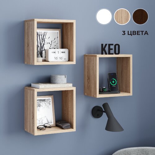 Комплект навесных полок (3 шт, ВхШхГ: 29.3х29.3х18.6 см) кубик для книг и цветов в спальню кухню детскую туалет Кео М2-Амиго сонома
