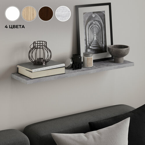 Полка настенная навесная (подвесная) 80х19.6х2.2 см деревянная для книг и цветов в комнату кухню детскую туалет Кео СТМ-600.8 бетон