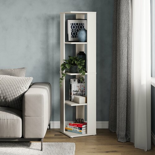 Угловой стеллаж узкий высокий КЕО КТМ-9 белый (молочный) ШхГхВ: 35х35х153,3 см на балкон в гостиную прихожую спальню открытые полки
