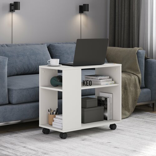 Журнальный столик на колесиках прикроватный КЕО КТМ-26 белый (молочный) ШхГхВ: 35х70х60 см приставной журнальный стол низкий в гостиную спальню