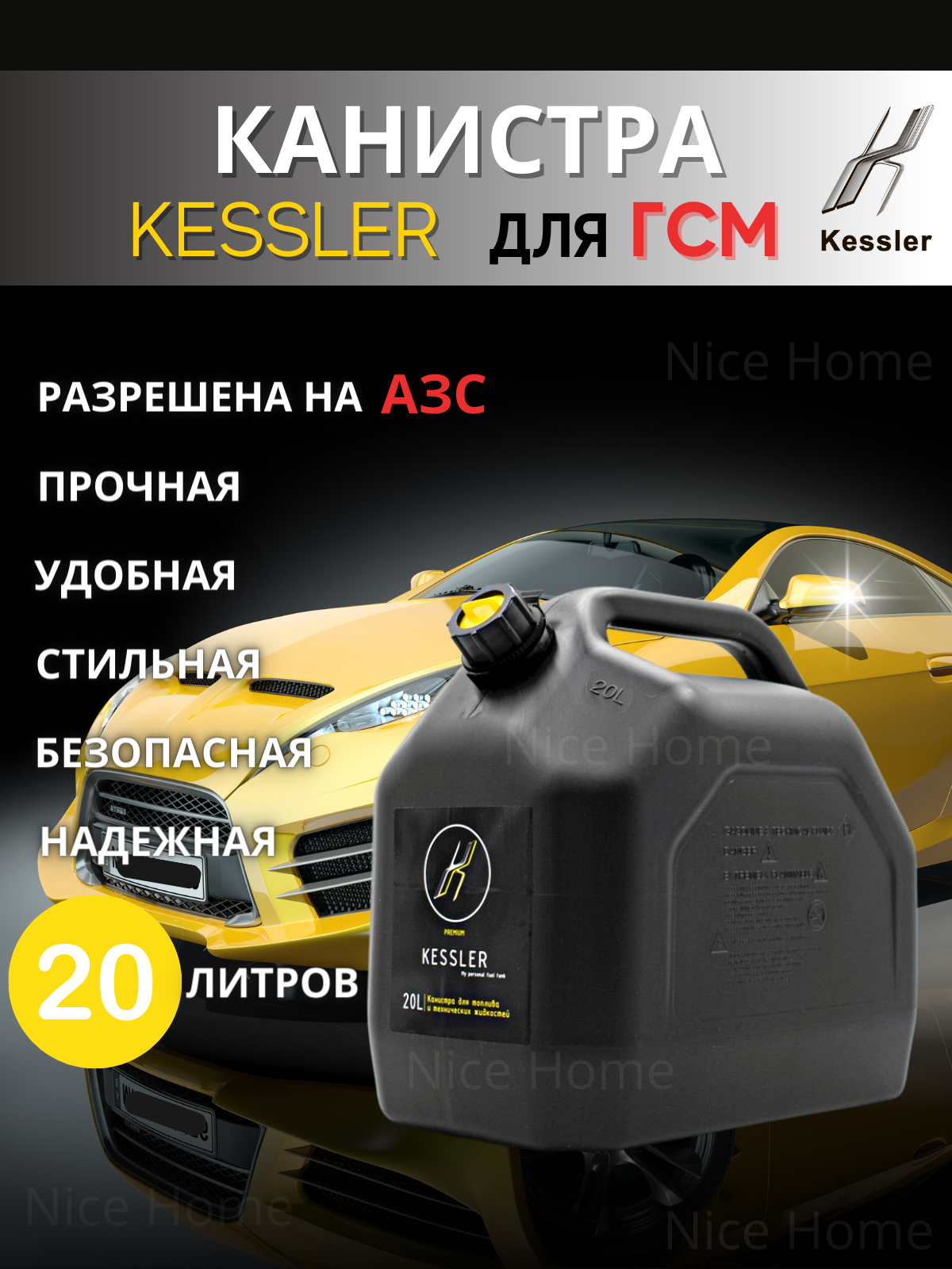 Канистра пластиковая для ГСМ усиленная евростандарт KESSLER 20л Канистра для бензина