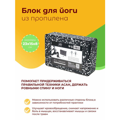 Блок для йоги из вспененного пропилена, 23х15х8 см