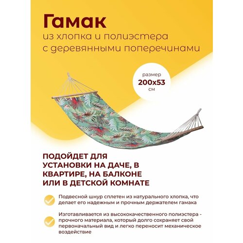 Гамак из хлопка и полиэстера с деревянными поперечинами, 200х53 см
