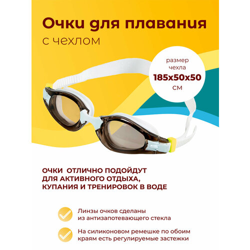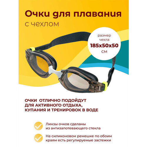 Очки для плавания из пластмассы с антизапотевающими стеклами и силиконовыми ремешками, от 14 лет, в пластиковом чехле