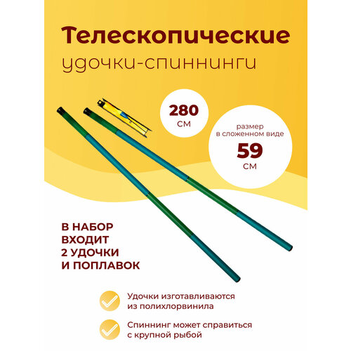 Рыболовные удочки-спиннинги, длина 280 см, сложенные - 59 см, 2шт, поплавок в комплекте