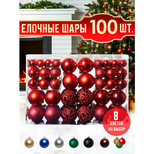 Новогодние елочные игрушки шары на елку Набор шаров 100 шт Подвесные пластиковые маленькие шарики на ель комплект Елочное украшение на Новый год