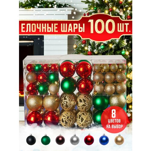 Елочные игрушки шары на елку Набор шаров 100 шт Зелёные, красные, золотые маленькие шарики новогодние