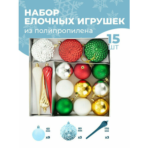 Набор елочных украшений из полипропилена, 15 шт