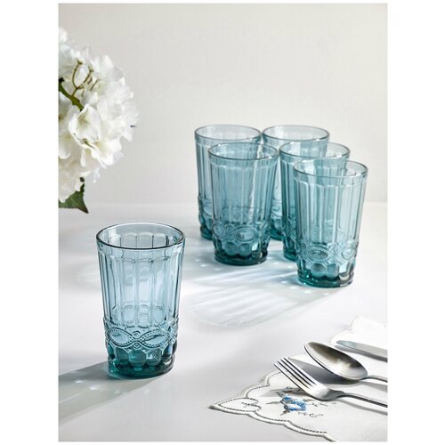 Набор стеклянных стаканов синего цвета, 350 мл, 6 шт
