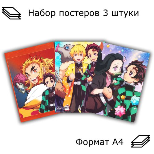 Набор постеров, плакатов Клинок, рассекающий демонов 3 штуки