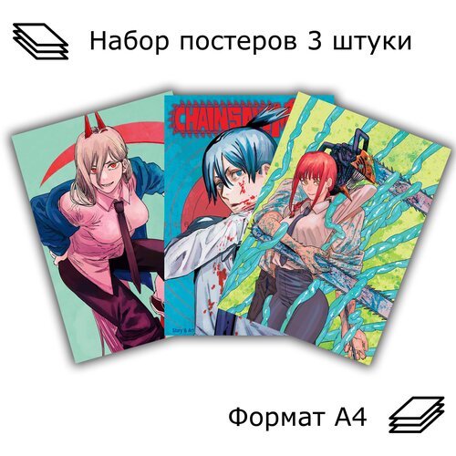 Набор Постеров, Плакатов Chainsaw Man "Человек Бензопила" 3 штуки KimiTo