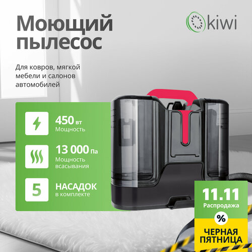 Моющий пылесос KIWI KCC-4323RB для химчистки ковров, мягкой мебели, салона авто, мягких игрушек, для всех видов загрязнений