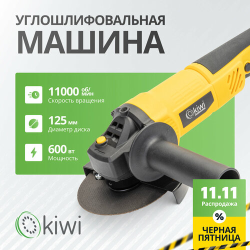УШМ болгарка KIWI KHAG-4114, 125мм. 1100 об/мин, проводная от сети 600 Вт. с защитой от перегрева и защитой от случайного пуска