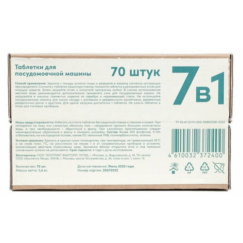 Таблетки для посудомоечной машины Kloob 7 in 1, 70 шт
