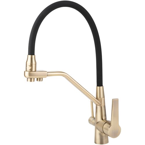 Смеситель для кухни с гибким изливом с подключением к фильтру KOLAG 5037-8 Черный+бронза