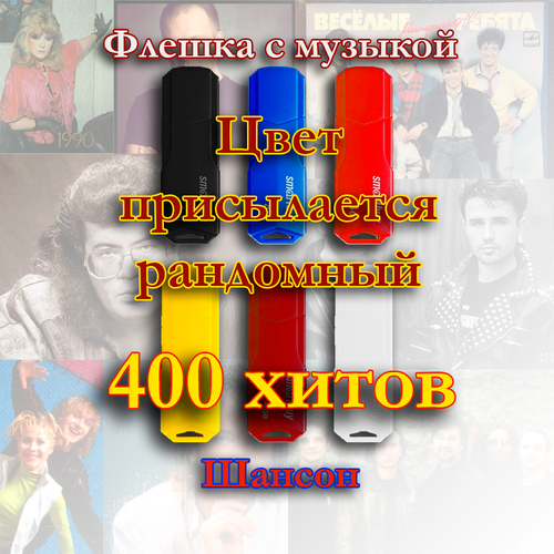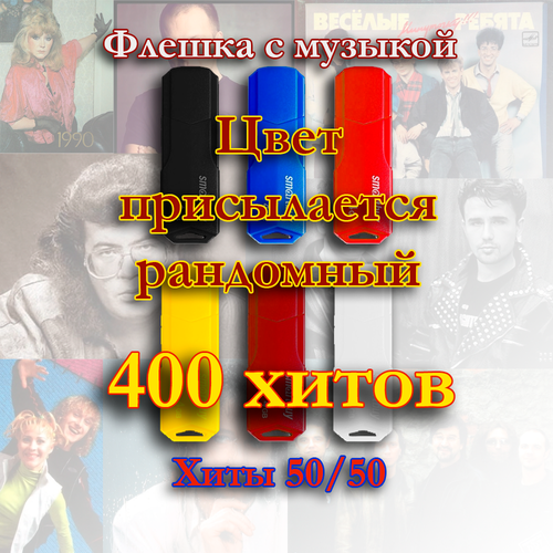 Флешка с музыкой в машину 50/50 400 хитов (русская и зарубежная сборка)