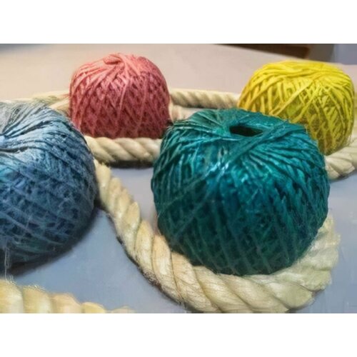 Шпагат джутовый Kraftcom 1120 текс, 1.5мм х 100м (1шт), цвет - желтый / для рукоделия и вязания, для крепежа и разметки, когтеточка