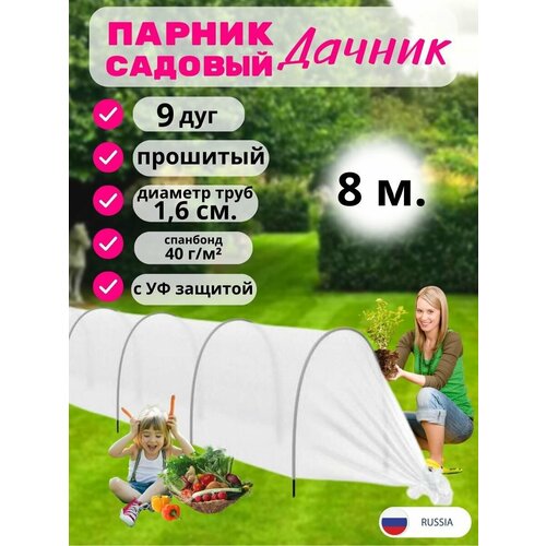 Парник для дачи "Дачник" с металлическими дугами Kraftcom, длина 8,5м / парник садовый для защиты растений от ночных заморозков дождей, ветров