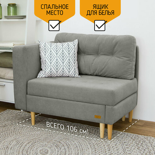 Диван-кровать KRASDIVAN Чарли, размер 106х70 см, с ящиком для белья, велюр Бахрия 9