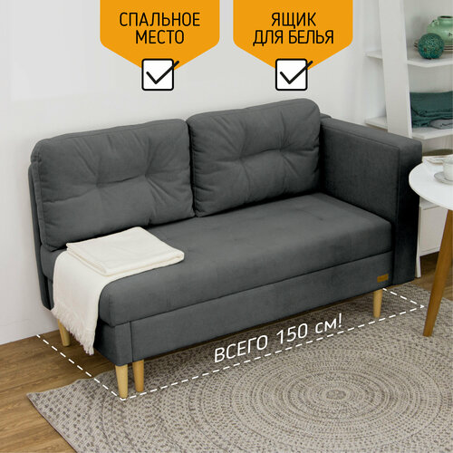 Диван-кровать KRASDIVAN Чарли, размер 150х70 см, с ящиком для белья, велюр Бахрия 41 темно-серый