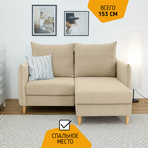 Угловой диван KRASDIVAN Эрик, размер 153 см со спальным местом, велюр Бахрия 2 светло-бежевый