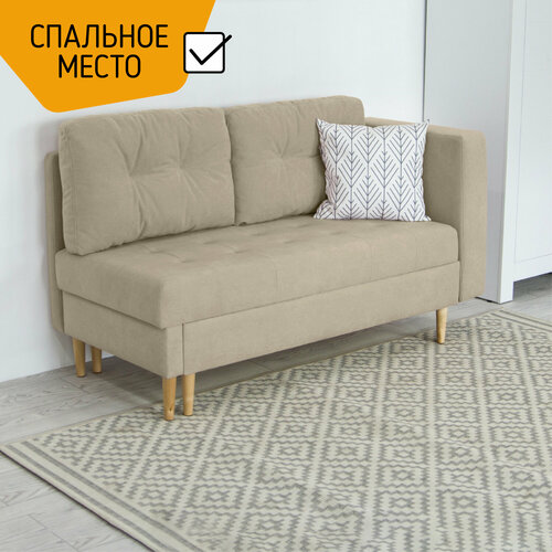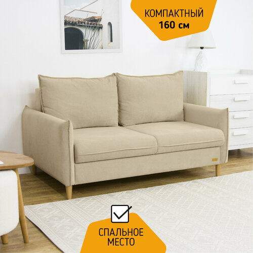 Диван-кровать KRASDIVAN Кайса, размер 160 см, со спальным местом, велюр Бахрия 4 темно-бежевый